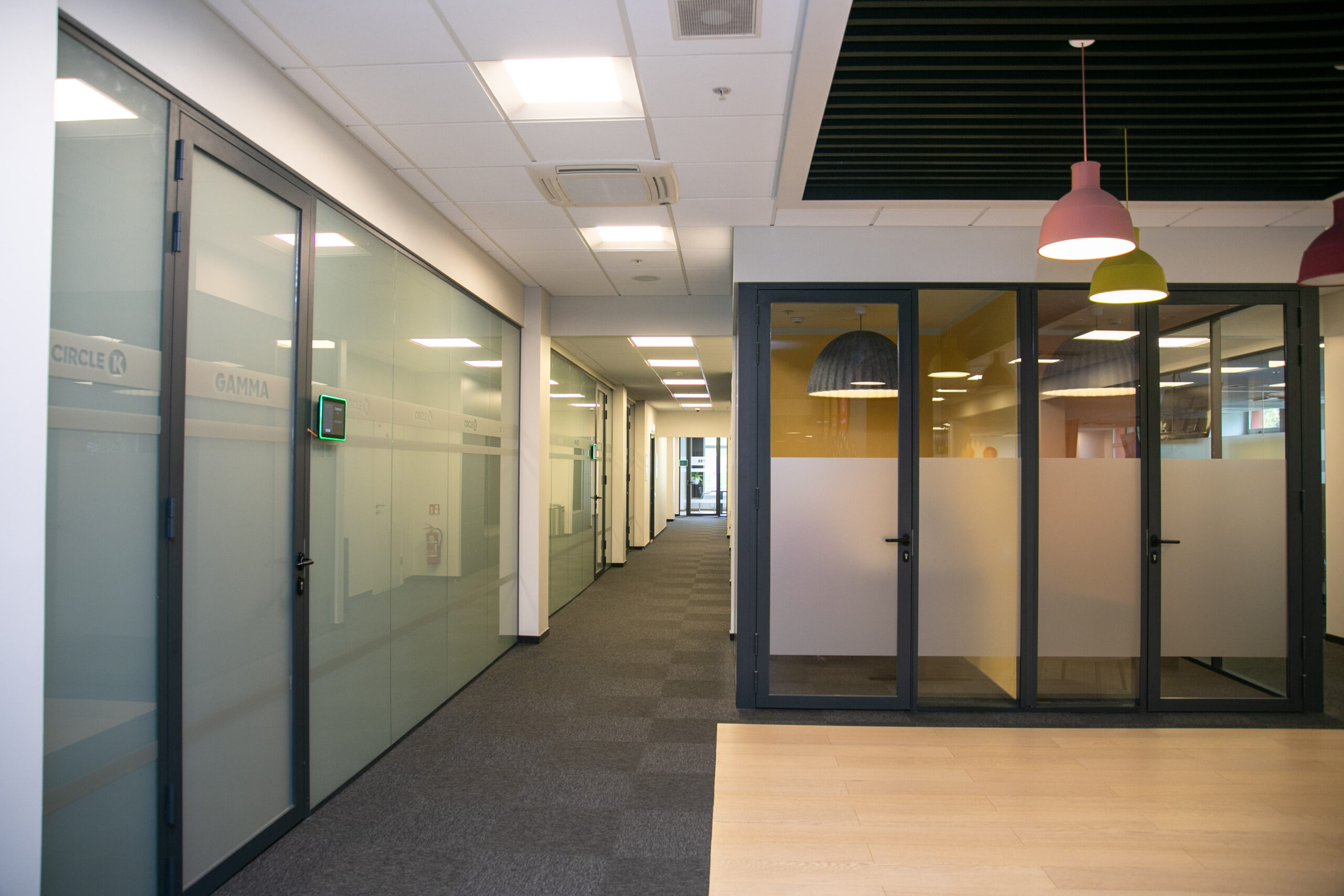 • Curved glass partitions